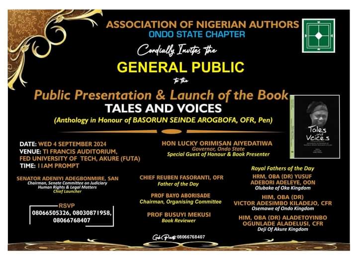 AUGUST, 2024 EDITION OF ANA MBARI LITERARY SERIES - IN HONOUR OF THE NOBEL LAUREATE; PROF. WOLE SOYINKA