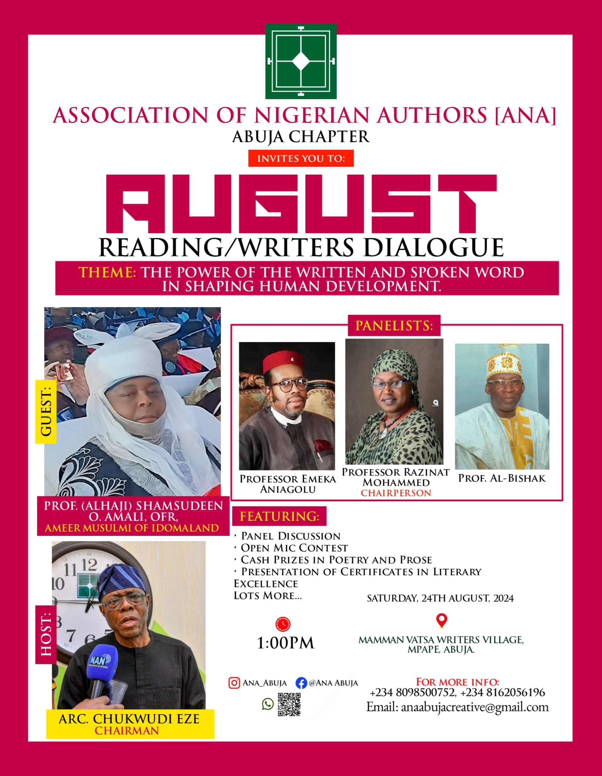 Published: 14th Aug. 2024ANA ABUJA CHAPTER AUGUST READING/WRITERS DIALOGUE