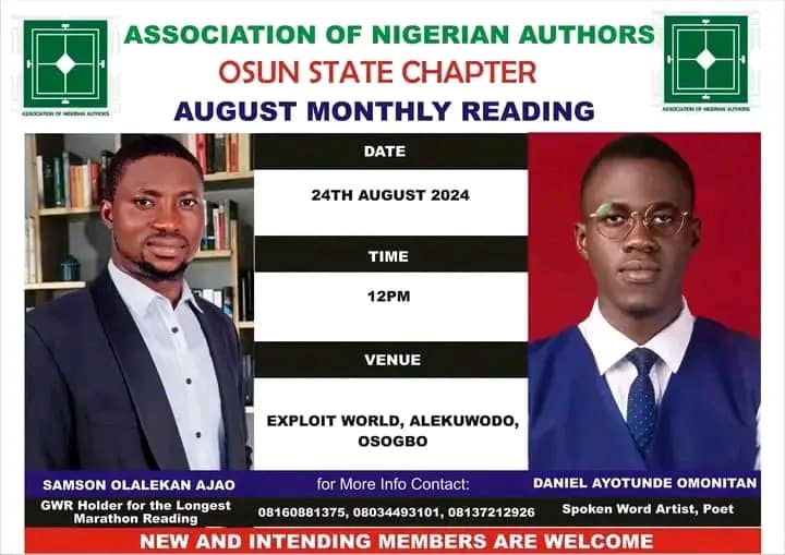 Published: 22nd Aug. 2024ANA OSUN AUGUST MONTHLY READING HOLDS THIS SATURDAY, 24TH AUGUST